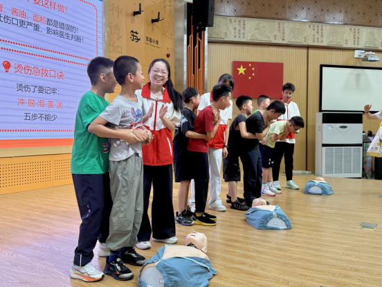 我们不仅要做好分内的事——学好专业知识,更要将其转化为行动的力量;要学会把“我”写成“我们”,把“人道”化为具体的行动,去服务他人、奉献社会。以前我常思考,青春是什么?也许是图书馆不灭的灯、考卷背后的无限可能、抑或对未来的无限幻想。而如今,我想青春应该是穿梭在讲台上的红马甲、是小朋友们掌声中愈发坚定有力的心跳。感谢这三天,让我把“逐梦”这个飘在空中的气球,化作紧攥在手中的路线图。未来,我将继续践行红十字精神,脚踏实地,用行动传递爱与温暖。