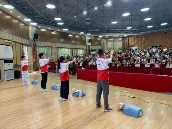 9月2日,实践团队先后前往苏辙小学、尚义镇小学以及眉山市委党校,开展以“铁路变迁科普宣传、红十字精神宣讲与应急救护技能培训”为主题的系列活动。活动现场,志愿者从铁路的起步、铁路的发展、高铁中的黑科技及西南交通大学对铁路发展的贡献等方面进行铁路变迁科普宣传,让参与师生切身感受到国家交通强国的强劲脉动。在应急救护培训环节,团队采用“理论讲解+实操演练”相结合的方式,重点讲解了心肺复苏(CPR)、创伤止血包扎、海姆立克急救法等实用急救技能,让大家在互动中掌握自救互救本领,凝聚人道力量,筑牢安全防线。