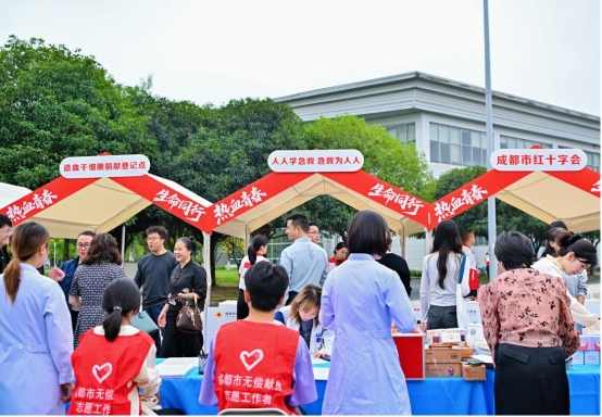 四川省红十字会、四川省教育厅、四川省卫生健康委员会、共青团四川省委,成都市红十字会、成都市精神文明建设办公室、成都市教育局、成都市卫生健康委员会、共青团成都市委员会、成都市血液中心、郫都区红十字会,学校党委学生工作部、党委保卫部、校团委、校医院等职能部门负责人,以及成都区域内60余所高校的400余名师生代表参加活动。