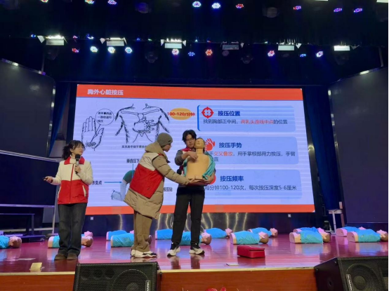 作为活动核心指导单位,西南交通大学红十字会充分发挥校园急救科普经验优势,与各联动单位紧密协作,创新采用 “学术讲座 + 实操演练” 模式,将急救知识科普与实操训练深度融合。活动现场,西南交通大学红十字会健康科普骨干志愿者立足小学生认知特点,在讲座中精心设计趣味互动游戏环节,通过情景问答、模拟闯关等形式,生动梳理急救关键技能操作要点与常见误区,层层递进引导孩子们理解急救知识向实操能力转化的核心方法。为提升培训质量注入了专业且生动的教学活力;电子科技大学红十字会学生分会志愿者结合校园场景分享实用急救知识,“讲练结合、即时反馈”的沉浸式学习模式,让师生们在理论学习与实操演练中切实提升了应急避险与自救互救能力,厚植了生命至上的理念。