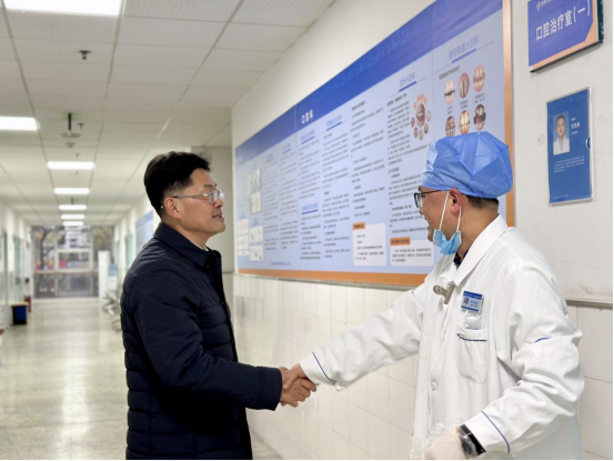 刘长军副校长听取了校医院关于年度重点任务与日常业务开展的汇报,实地走访了眼耳鼻喉科、外科、中医康复科、口腔科、放射科、健康管理中心等临床科室。走访期间,他与现场就诊的师生、一线医护及工作人员亲切交流,详细询问日常接诊、服务流程、设施运行及师生健康需求等方面的情况。