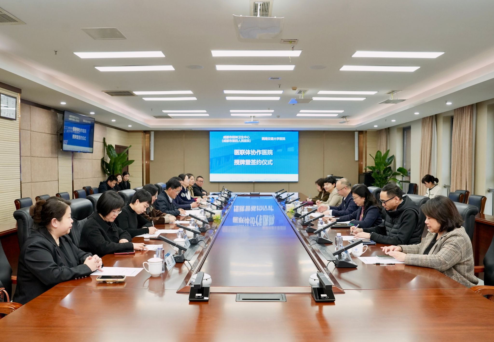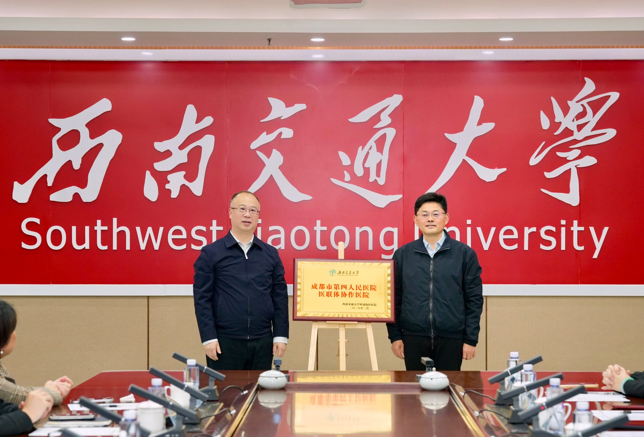 3月13日,成都市第四人民医院(成都市精神卫生中心)与西南交通大学医院医联体协作医院授牌暨签约仪式在犀浦校区举行。成都市第四人民医院院长陈勇、纪委书记刘红,学校党委常委、副校长刘长军出席仪式。校医院院长刘莉主持仪式。